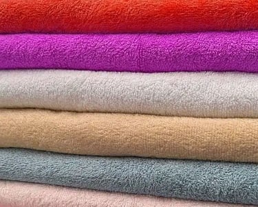 Le tissu éponge est caractérisé par ses petites boucles tissées ou tricotées qui lui confèrent une capacité d’absorption exceptionnelle. Généralement fabriqué en coton, il peut également être mélangé à du bambou ou du polyester pour améliorer ses propriétés, comme la souplesse, la douceur ou la durabilité.