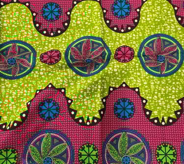 Le wax est un coton imprimé selon une technique inspirée du batik indonésien, popularisé en Afrique au XIXᵉ siècle. Sa particularité réside dans ses couleurs vives et durables ainsi que dans ses motifs géométriques, floraux ou symboliques. Chaque dessin peut raconter une histoire ou transmettre un message culturel fort.