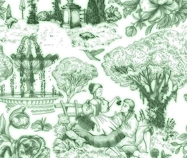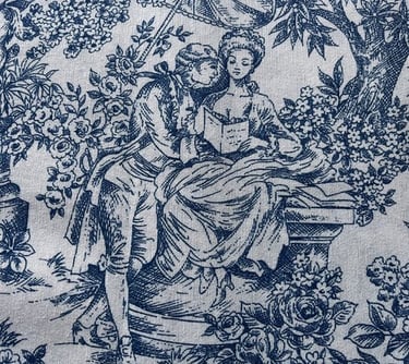 La Toile de Jouy est un tissu français classique imprimé de motifs détaillés représentant des scènes pastorales, historiques ou bucoliques. Elle est reconnue pour son élégance intemporelle et son style raffiné.
