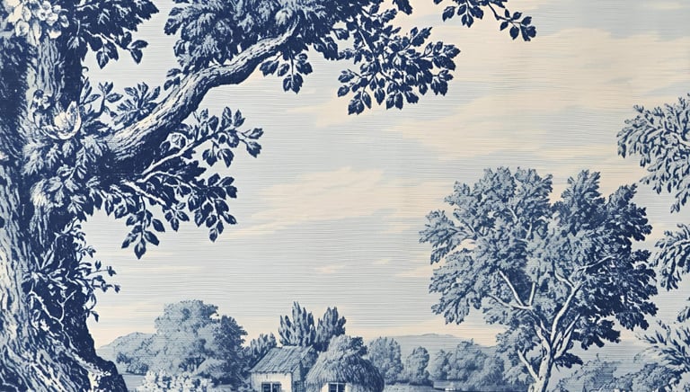Créée à Jouy-en-Josas par Christofle-Philippe Oberkampf en 1760, la Toile de Jouy était initialement imprimée à la main avec des cylindres gravés. Ces motifs bucoliques et historiques ont rapidement séduit les maisons royales et les amateurs de décoration raffinée. Aujourd’hui, la Toile de Jouy conserve son style classique français, tout en s’adaptant aux intérieurs contemporains.
